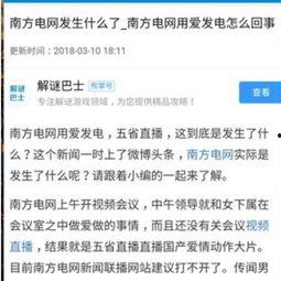 最近南方电网家属爆料事件可是闹得沸沸扬扬的,咱们得好好聊聊这事儿。你有没有听说,南方电网的家属们竟然联名举报自家单位?这可真是让人大跌眼镜啊!下面,就让我带你从多个角度来了解一下这个事件。